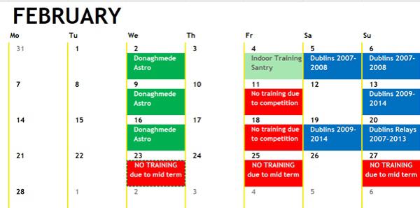 Training for athletes entered in technical events at Dublins. 60m starts, Hurdles, High Jump & Long Jump