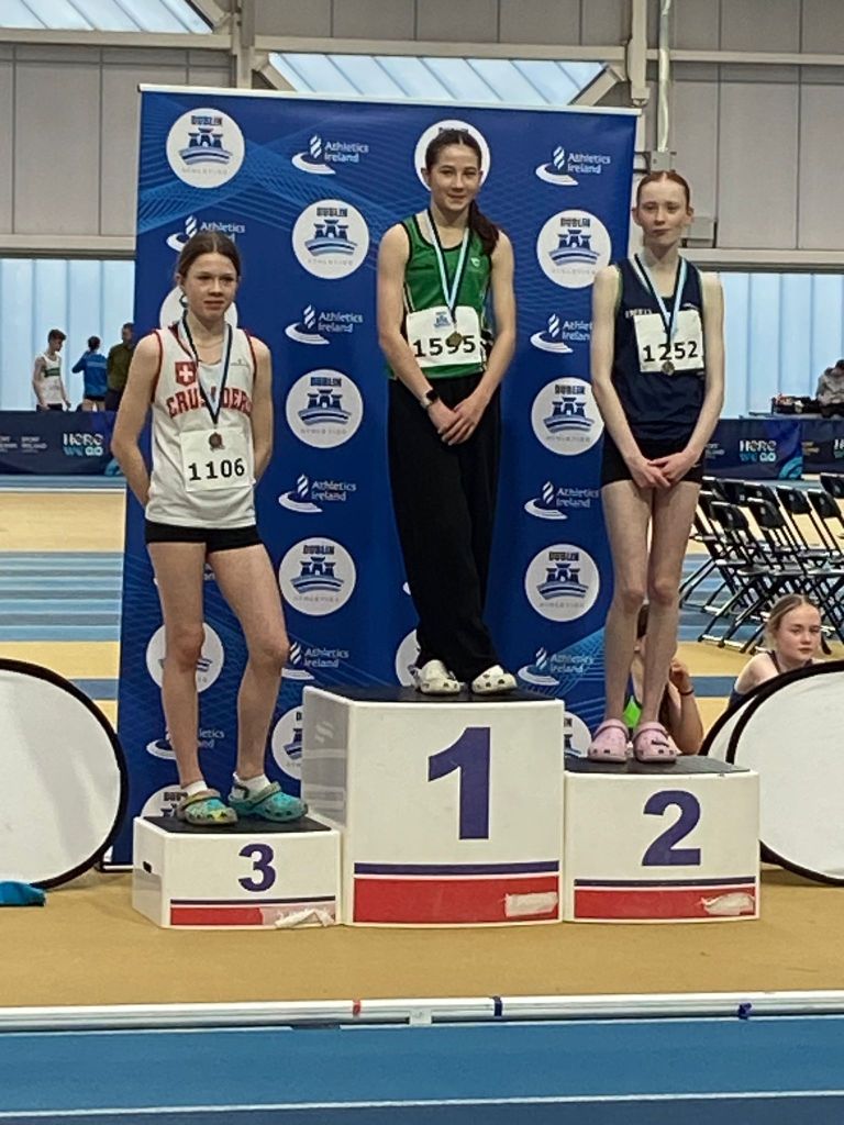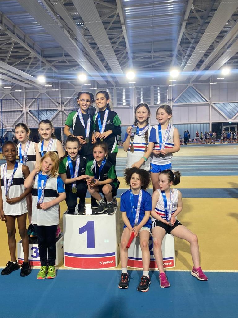 It was a landmark weekend for the Club at the Dublin Indoor Relay Championships with 8 teams qualifying for the All-Ireland Championships on April 5th. It was fitting that our very first relay winners back in 2020, the 2011 Girls, had a day to remember with not just two teams making the final but both teams making the podium and qualifying for All-Ireland. The A Team included Sophie, Ella, Eva and Evie while the B Team included Ava, Sarah, Darcy and Liliya. The squad also included Sophie and Emma.