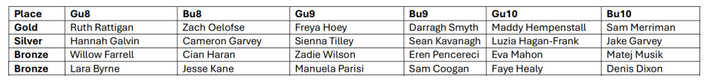 Although not an All-Ireland qualifying event, the Boys u10 had two teams make the final coming 3rd and 6th with Sean, Jamie, Eren and Darragh making the podium.